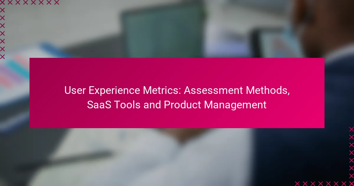 User experience metrics are essential for evaluating the effectiveness of SaaS products, with key indicators such as Net Promoter Score (NPS) and Customer Satisfaction Score (CSAT) offering insights into user satisfaction and usability. By employing various assessment methods, including surveys and usability testing, teams can gather both qualitative and quantitative data to better understand user interactions. Utilizing effective SaaS tools enables product managers to identify user preferences and pain points, ultimately guiding improvements in the overall user experience.
